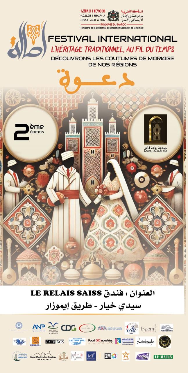 تنظم جمعية بوابة فاس الدورة الثانية من المهرجان الدولي للعرس التقليدي المغربي الاصيل بالمنتجع السياحي سيدي خيار الموصل ،وذلك ابتداءا من 2ماي الى غاية 4منه2025 بجضور نخبة كبيرة من الفنانين.
