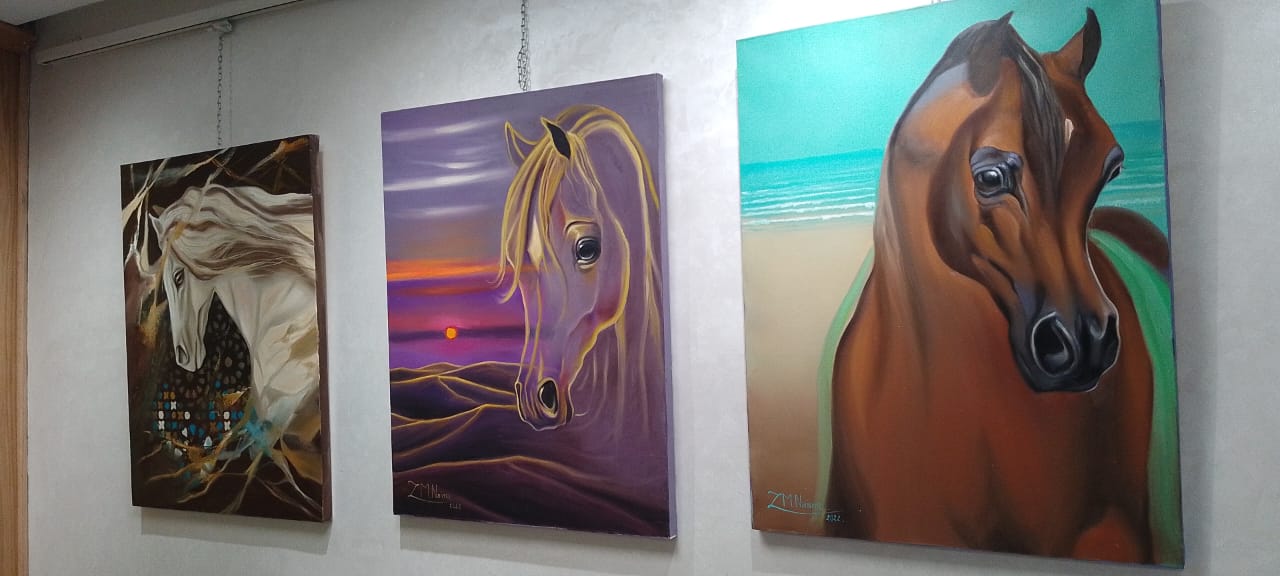 لوحات الفنانة احصنة مطهمة لها نخوة التراث والفروسية والموروث المجتمعي الموغل في الجمال، ونساء وقورات تطل من نوافذ العادات والتقاليد المغربية الأصيلة، انها تلك الفتاة التي تعانق جرة الحلم برائحة الطين على ظل صهيل خيول ترفض لجام القهر، وتنشد براءة الحرية.