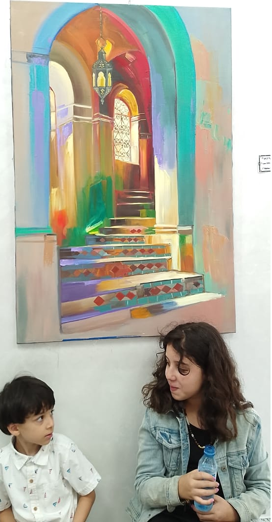 وأضافت “رسالتي في المعرض فنية، جمالية التزم فيها بإبراز مهن الفنان، وتبليغ الرسالة التشكيلية في حب الفن، والهوية والانتماء المغربي، من خلال العديد من الاشكال، منها الحلي، الجواهر، المرأة المغربية الوقورة، التي تستنبط قوتها من جذورها، كما استمد ألوان الزينة، والالوان الترابية المغربية من الطبيعة، وهدفي نبيل، لان الفن هو المتعة، الحياة، ومدرسة تعلمنا الشيء الكثير”.