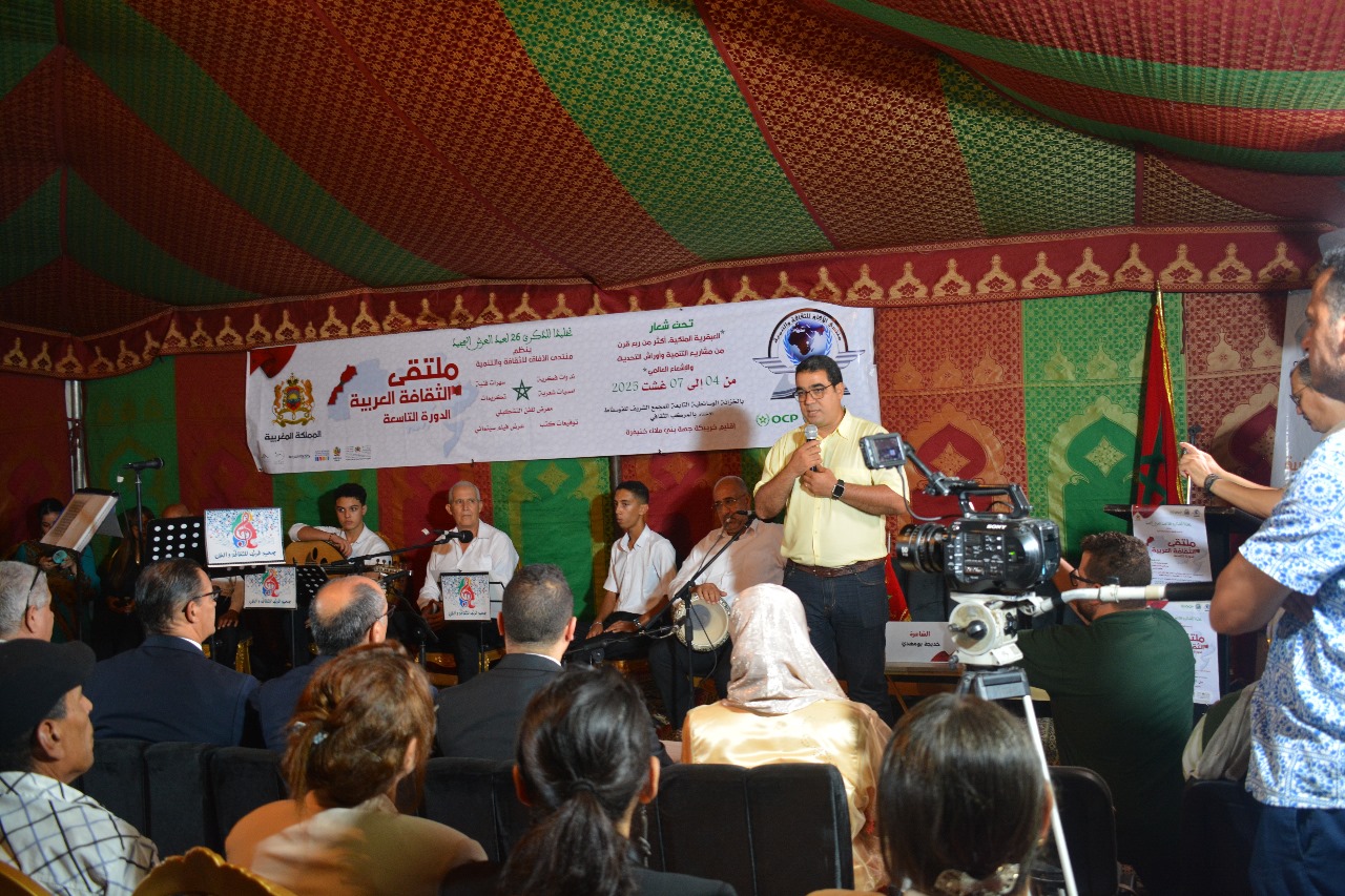 خريبكة ـ 8 ـ 08 ـ 2025 ـ (اج) ـ ـ ـ في أجواء فنية وثقافية مفعمة بالروح الوطنية العالية، أسدل الستار مساء أمس الخميس 7 غشت الجاري بخريبكة، على فعاليات الدورة التاسعة لملتقى الثقافة العربية، التي نظمها منتدى الآفاق بمناسبة ذكرى عيد العرش المجيد الخالدة، تحت شعار”ربع قرن من مشاريع التنمية وأوراش التحديث والإشعاع العالمي”.