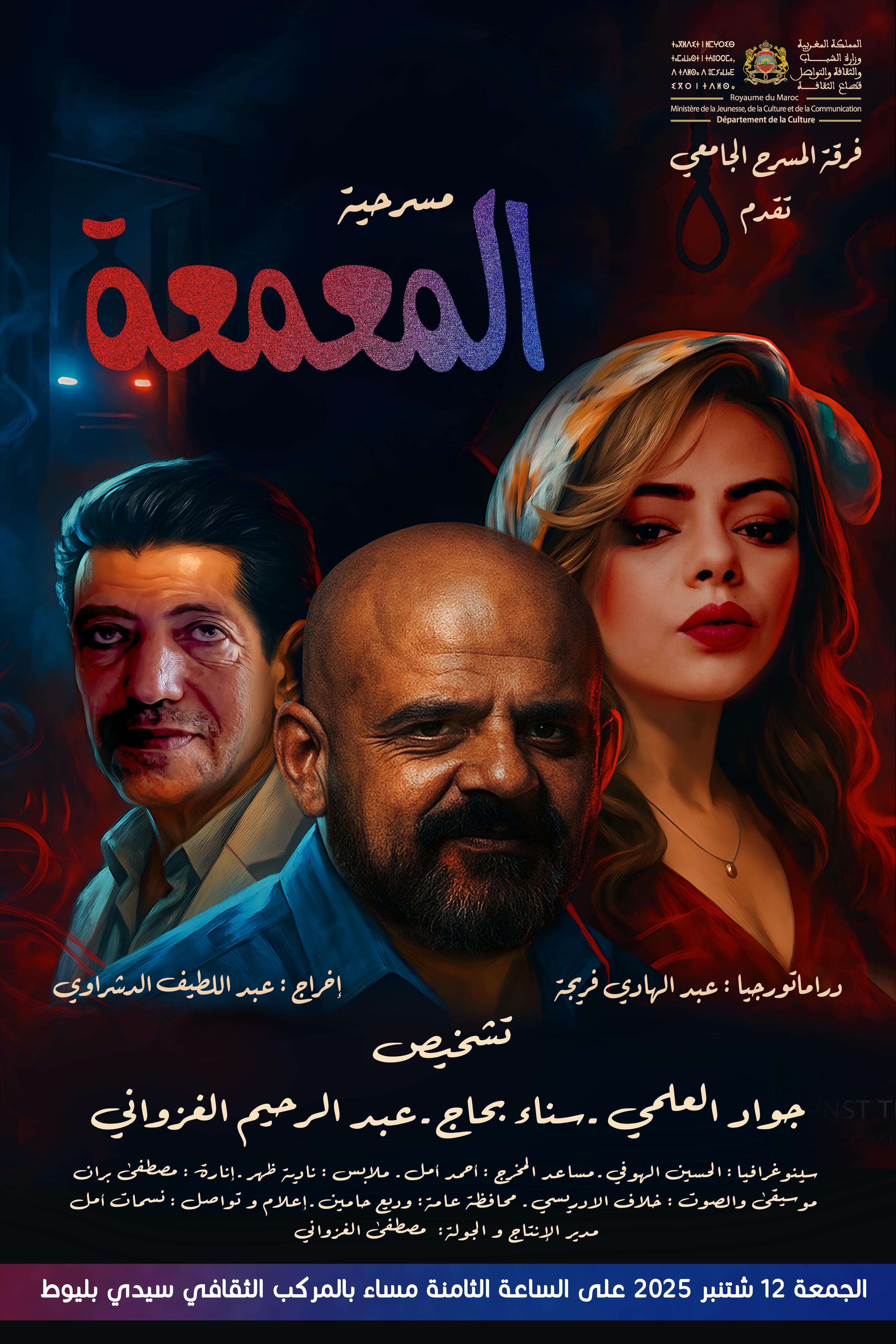 مسرحية “المعمعة” المدعمة من وزارة الشباب والثقافة والتواصل، تقدم تجربة مسرحية مثيرة حيث تجد شابة نفسها محاصرة بين الخوف والمطاردة، لتلجأ إلى شقة غريب يمنحها الأمان… أو هكذا يبدو! سرعان ما تتصاعد الأحداث، ويشتد التوتر مع وصول من يطاردها، لتغرق الشخصيات والجمهور معًا في دوامة من الرعب والتشويق حتى اللحظة الأخيرة.