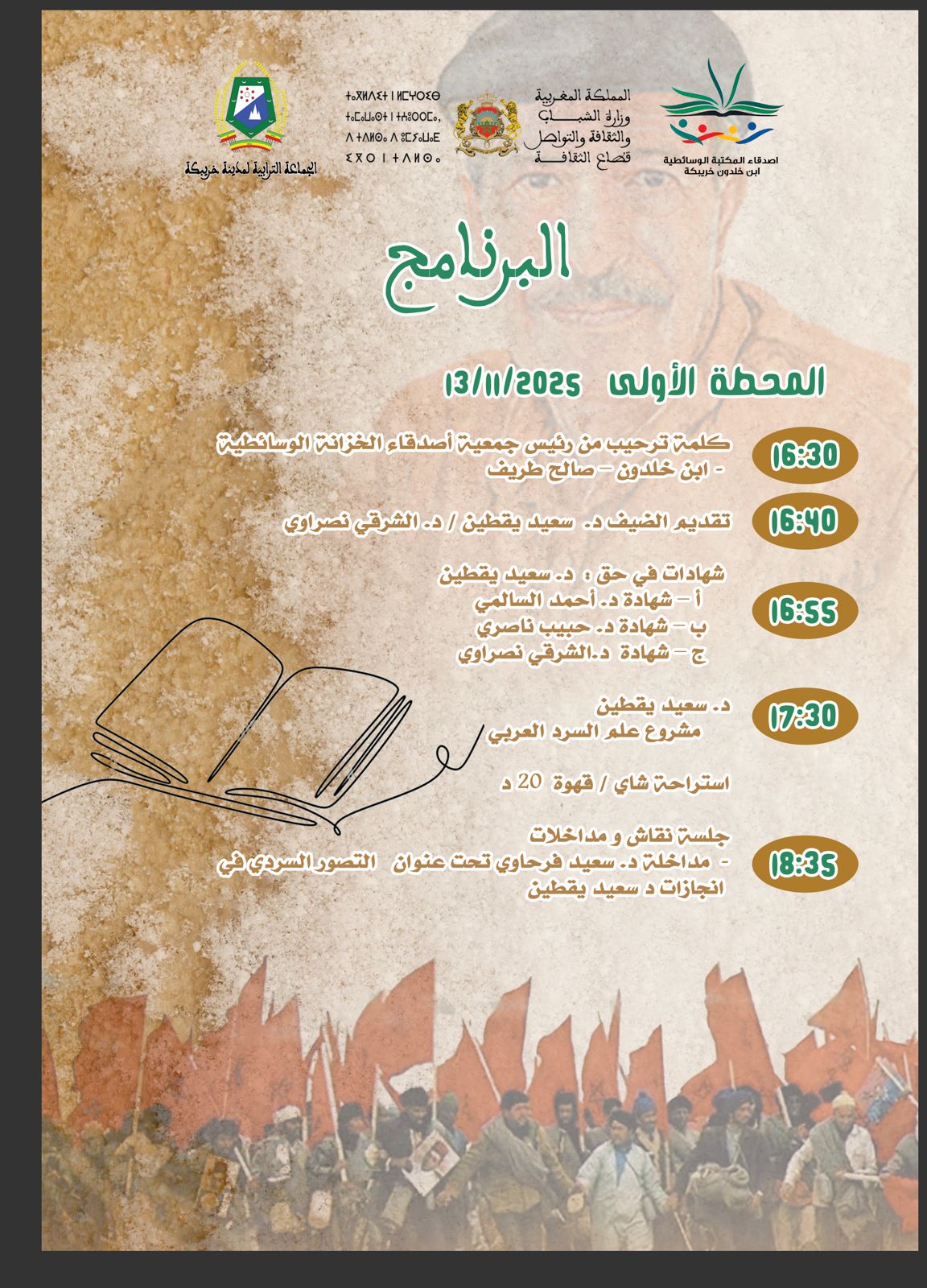 كما تعرف فقرة الدكتور سعيد “يقطين مشروع علم السرد العربي” جلسة نقاش ومداخلات لكل من الدكتور سعيد فرحاوي بعنوان التصور السردي في إنجازات سغيد يقطين، في قراءة نقدية تستعرض أبرز إسهاماته في تطوير الدرس السردي العربي وتجديد مفاهيمه.
